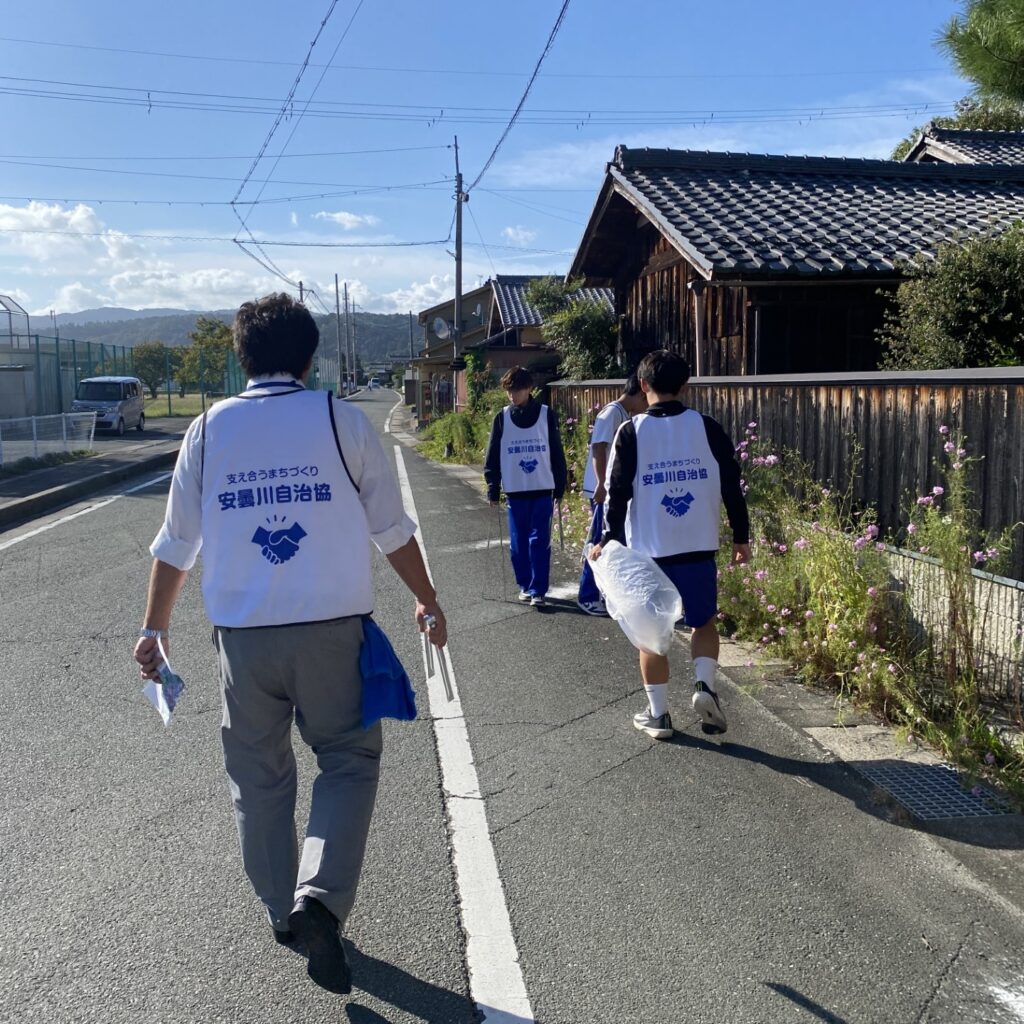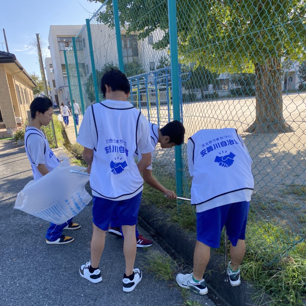 毎年、安曇川中学校のみなさんと一緒に、クリーンアップ運動として駅周辺や国道沿いのゴミを拾う活動を行っていますが、今年度は安曇川中学校周辺の清掃活動を行いました。