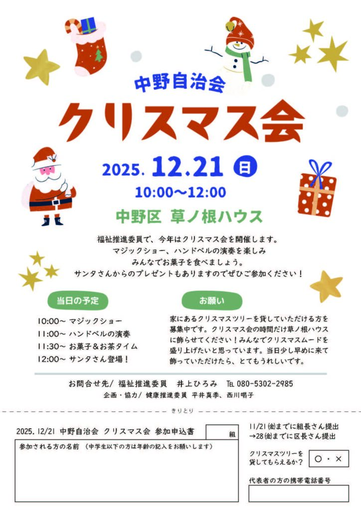 中野自治会「クリスマス会」を開催しました!