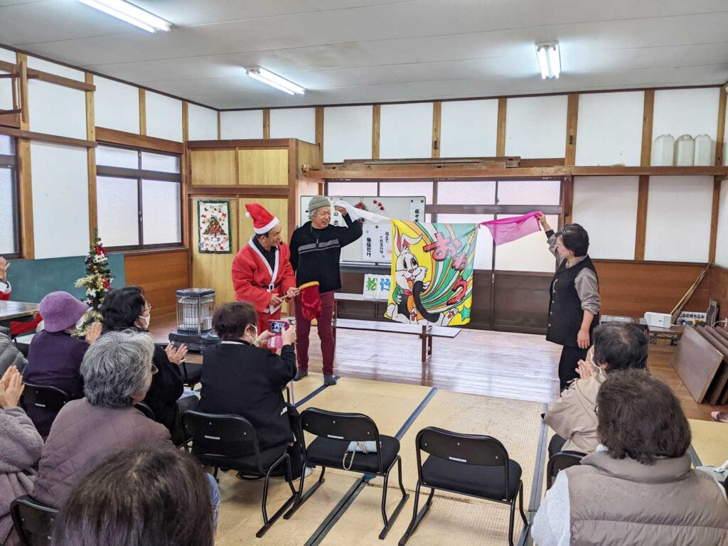令和7年12月21日(日)午前10時から中野草ノ根ハウスにて、福祉推進員、健康推進員の企画による「クリスマス会」を開催しました。
